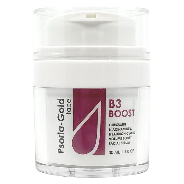 FACE B3 BOOST 1.0 oz: 1.0 oz Airless Jar. Curcumin, Niacinamide (Vitamin B3), Hyaluronic Acid (Collagen Binding Moisturizer) Volume Boost Facial Serum. This amazing serum will make your skin feel smooth while boosting volume and resistance to injury. Use over the Curcumin Gel layer for extra anti-aging benefits.