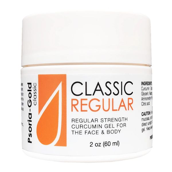 CLASSIC Regular 1.7 oz Pump, 2.0 oz, and 2.0 oz Two-Pak: Bestselling curcumin gel formula for the face and body. Easy to dispense a larger quantity when used on body and scalp. This new Psoria-Gold® Classic regular formula is now made with more curcumin, the active ingredient which gives turmeric its phosphorylase kinase inhibition properties. This new formula is now more spreadable, which allows easier application for larger areas such as the body, or the face/chest area. Formulated to be less drying.